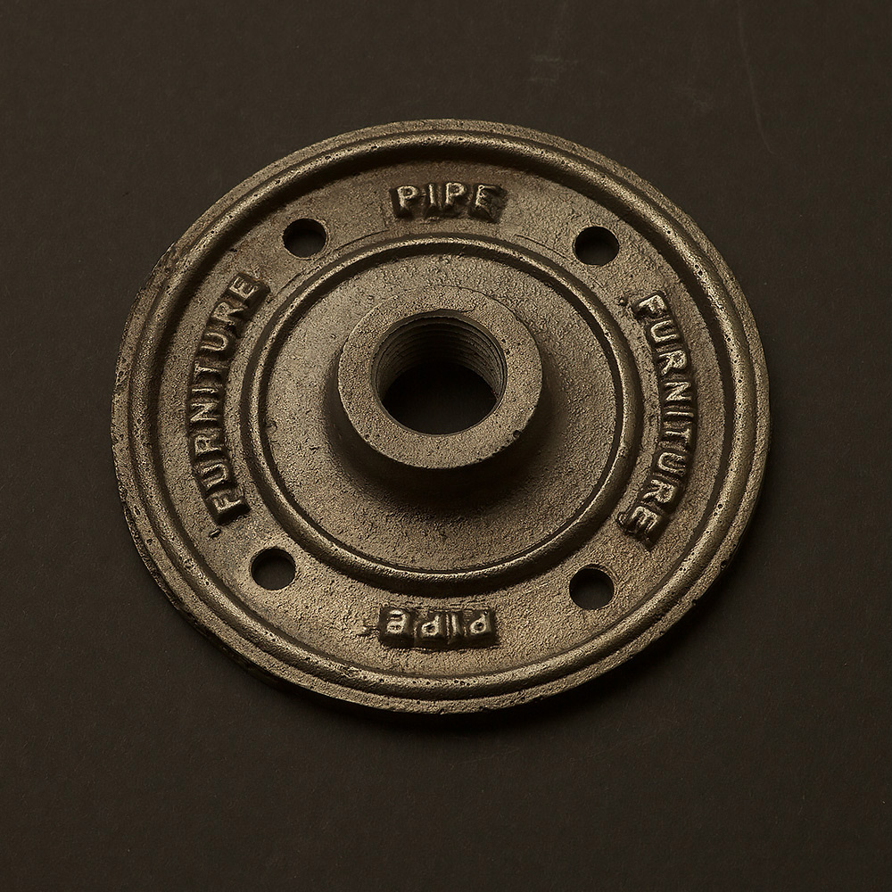15mm (Half Inch) Black Steel decorative flange plate is an industrial style plumbing style component finished as black steel to make items with a rubbed iron appearance. It is 100mm diameter with four countersunk screw holes and come complete with four wood screws.